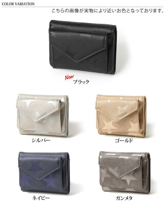 スター柄プリント薄型ミニウォレットレディース財布 3つ折り 三つ折り ミニ財布 小さい財布 サイフ ウォレット カード入れ 小銭入れ コインケース 極小財布 コンパクト 星 小物 軽量 フラグメントケース